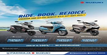 Established in 2007, PADMAJA SUZUKI, Labbipet is one of the most well-known and trusted Suzuki Bike Showroom in Vijayawada. PADMAJA SUZUKI is an authorised Suzuki Motorcycle Dealer with a state-of-the-art showroom where you can check out the new Avenis, take it out for a test ride, and book your dream ride. On our website, you can explore the entire range of two-wheelers by Suzuki Motorcycles. You can also find out the ex-showroom price of different variants, calculate EMI, get a callback, and even book a suitable time slot for a test ride. Check out your favourite Suzuki motorcycles and scooters conveniently, with the easy-to-use filters to simplify your search. PADMAJA SUZUKI offers the entire range of Suzuki Motorcycles, Big Bikes, and Scooters in the Vijayawada, along with robust 3S facilities – sales, service, and spares. Buy a new Suzuki Avenis from PADMAJA SUZUKI, check out its features, take it for a ride, get a quote, and book your favourite bike from the entire range of Suzuki motorcycles and scooters in Vijayawada. At PADMAJA SUZUKI, you can also avail two-wheeler finance to buy your favourite ride.